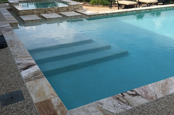 For your pool remodeling project, consider your pool an open canvas on which you can Customize The Look Of Your Pool. Tropic Island Pools offer many aggregate finishes in a wide variety of attractive and resilient options that may suit your taste in style and color for your swimming pool in Tropic Island Pools. For concrete or gunite pools, plaster is the most desirable finish. It comes in several forms and many color choices. When applied properly, and with no underlying structural problems, plaster provides a barrier between the structure of the pool and the water in which you swim.